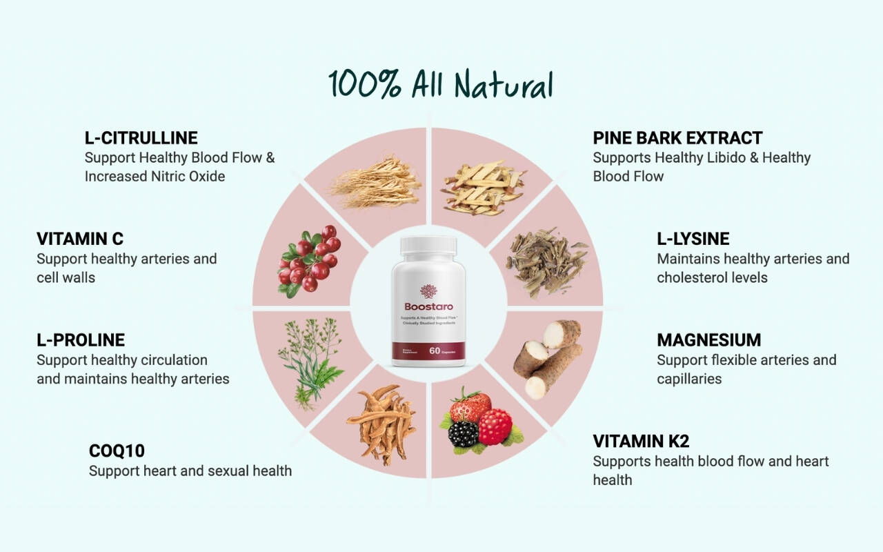 Boostaro works by using a special blend of ingredients that support healthy blood flow, nitric oxide levels, and overall cardiovascular health, which in turn supports erection quality and sexual performance.