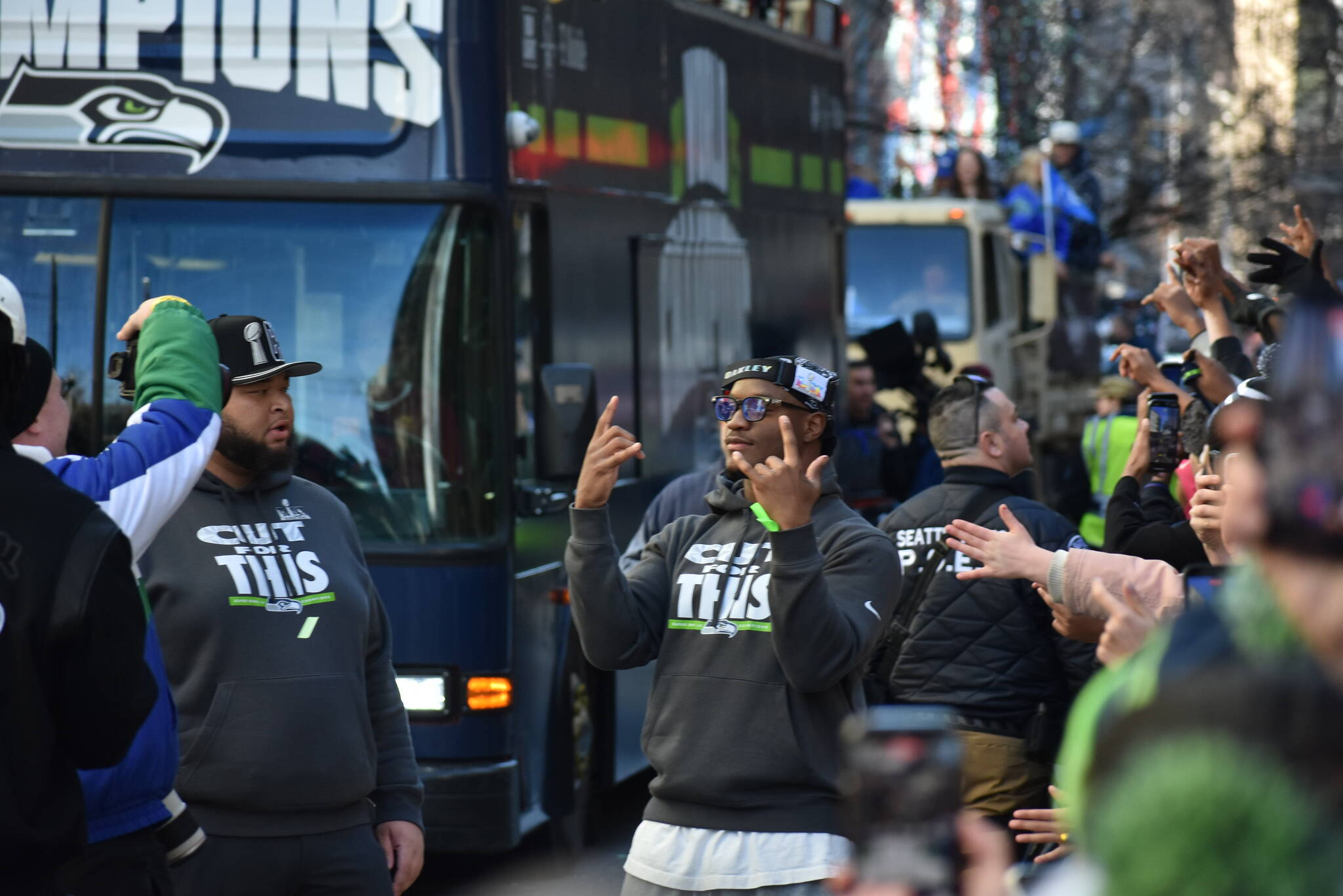 Around 11:15 a.m., the team’s buses left Lumen Field and embarked on Fourth and Washington to Cedar — over a mile and a half.