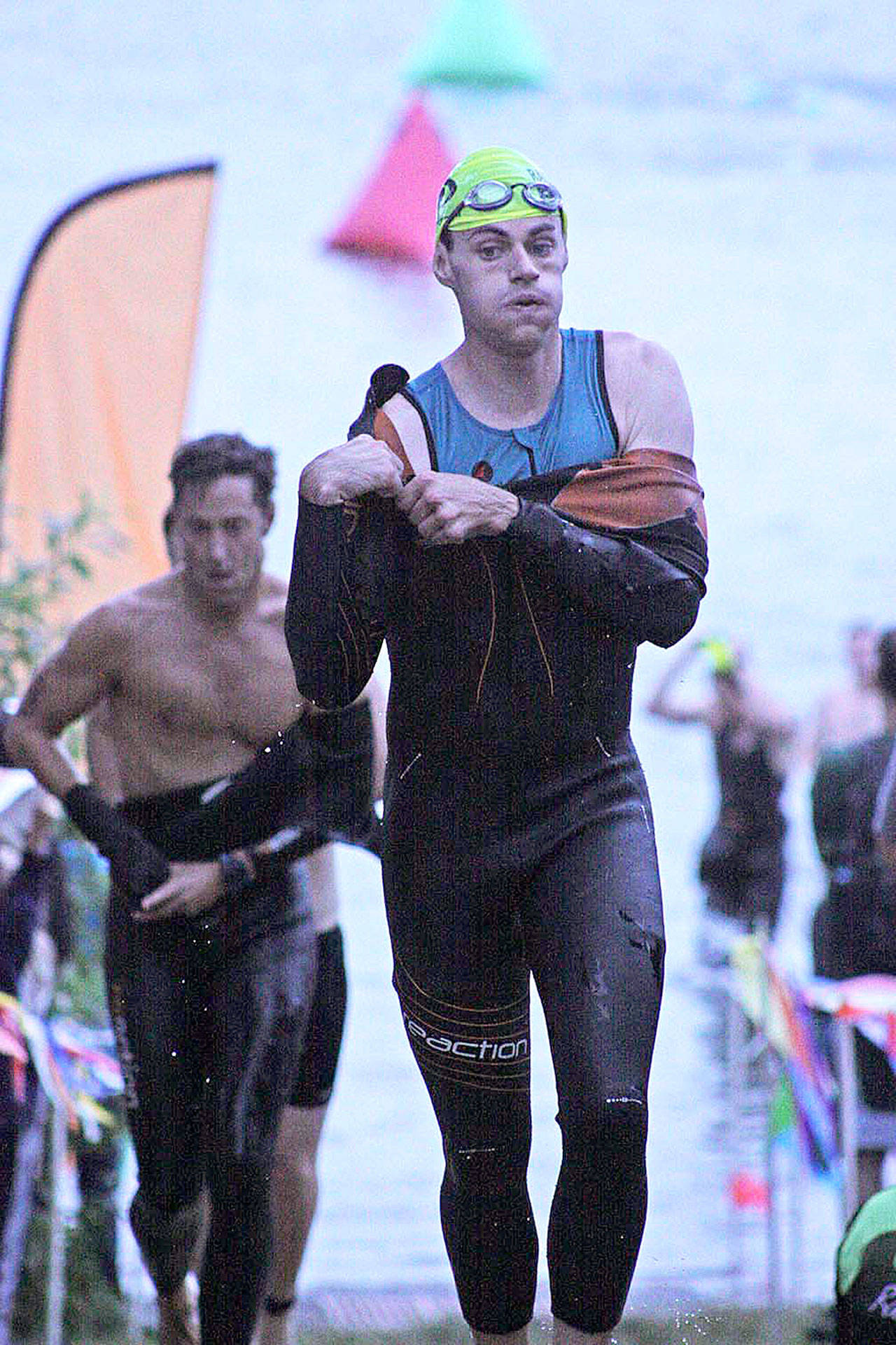 Johnson won the sprint title last August at the shorter distances – half-mile swim, 16.4-mile bike and 3.1-mile run. He came prepared for the longer test last Saturday.