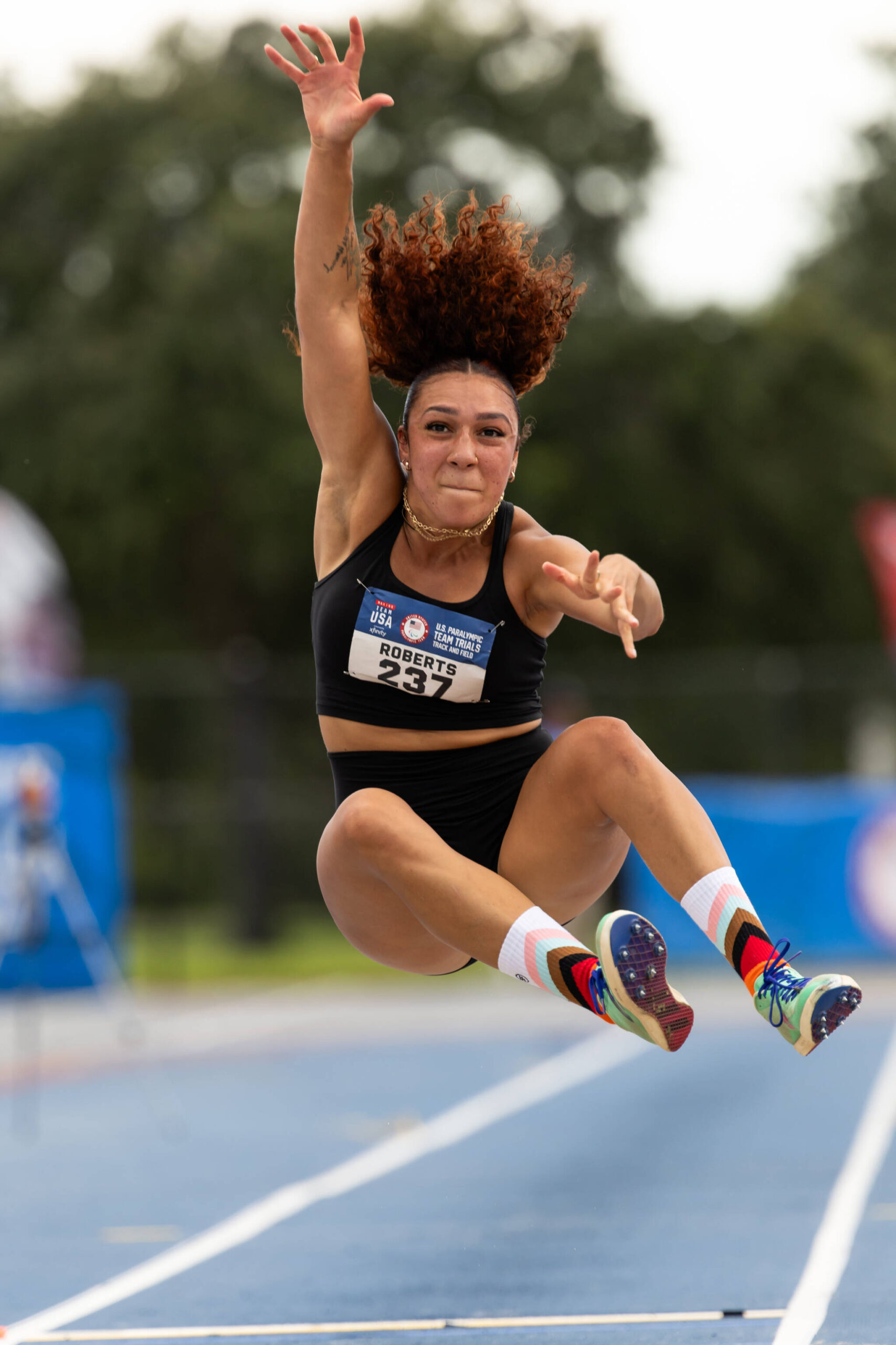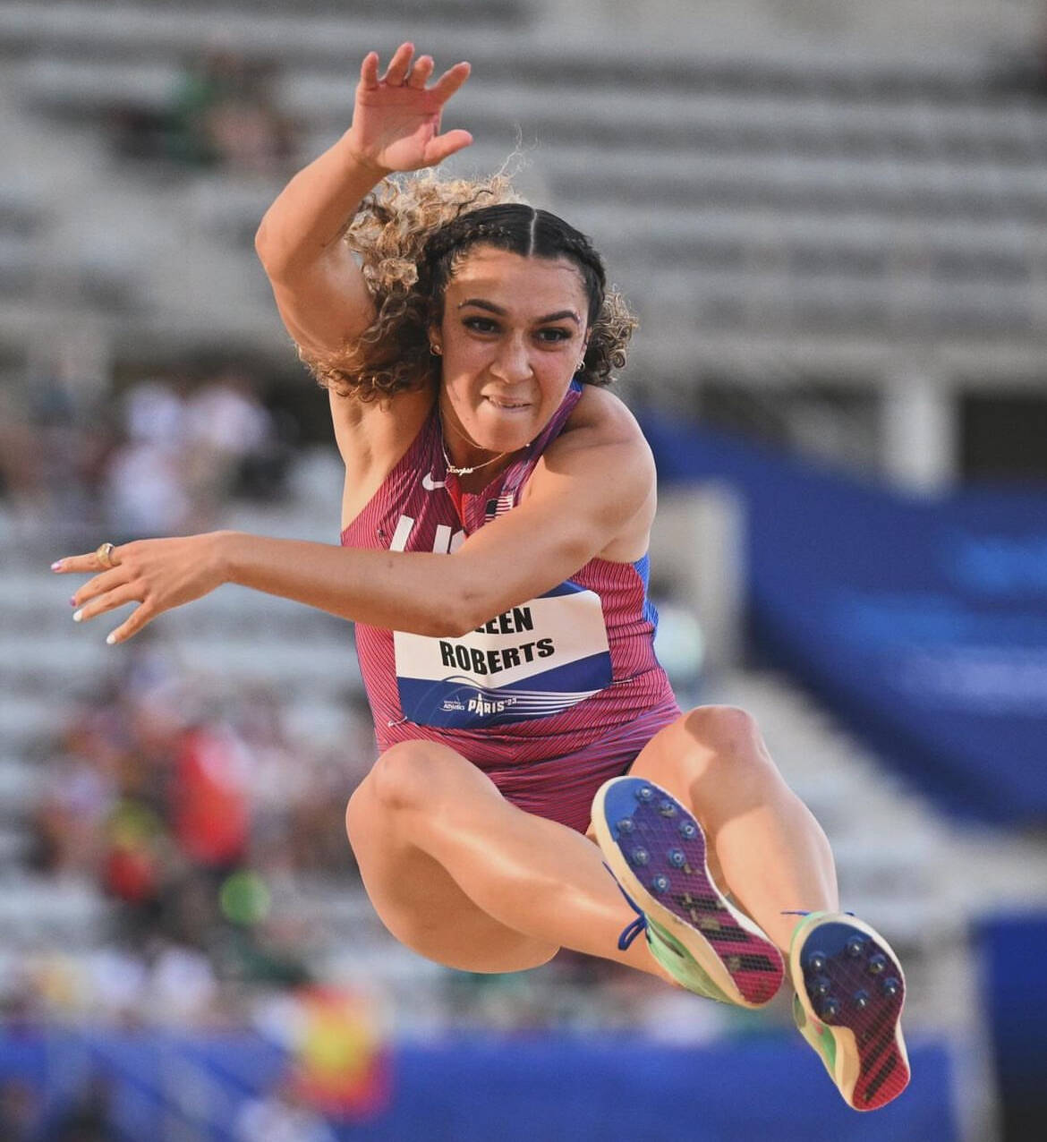 Although she is running the 100-meter and 200-meter dash in Paris, her most anticipated event is the long jump, where she set a North American record back in 2021: “I am super excited for the long jump because I finally am jumping what I want to be jumping my whole career… Long jump is just my baby.”