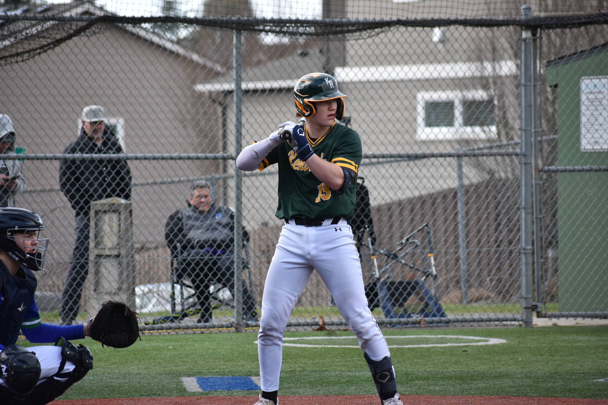 After a lengthy break from the mound during the Charger four-run inning, Kentridge starter Dominic DesMarais sat down the Patriots in order, including two assists on comebackers. His night ended after throwing four innings, allowing just two hits, two unearned runs and a pair of strikeouts.