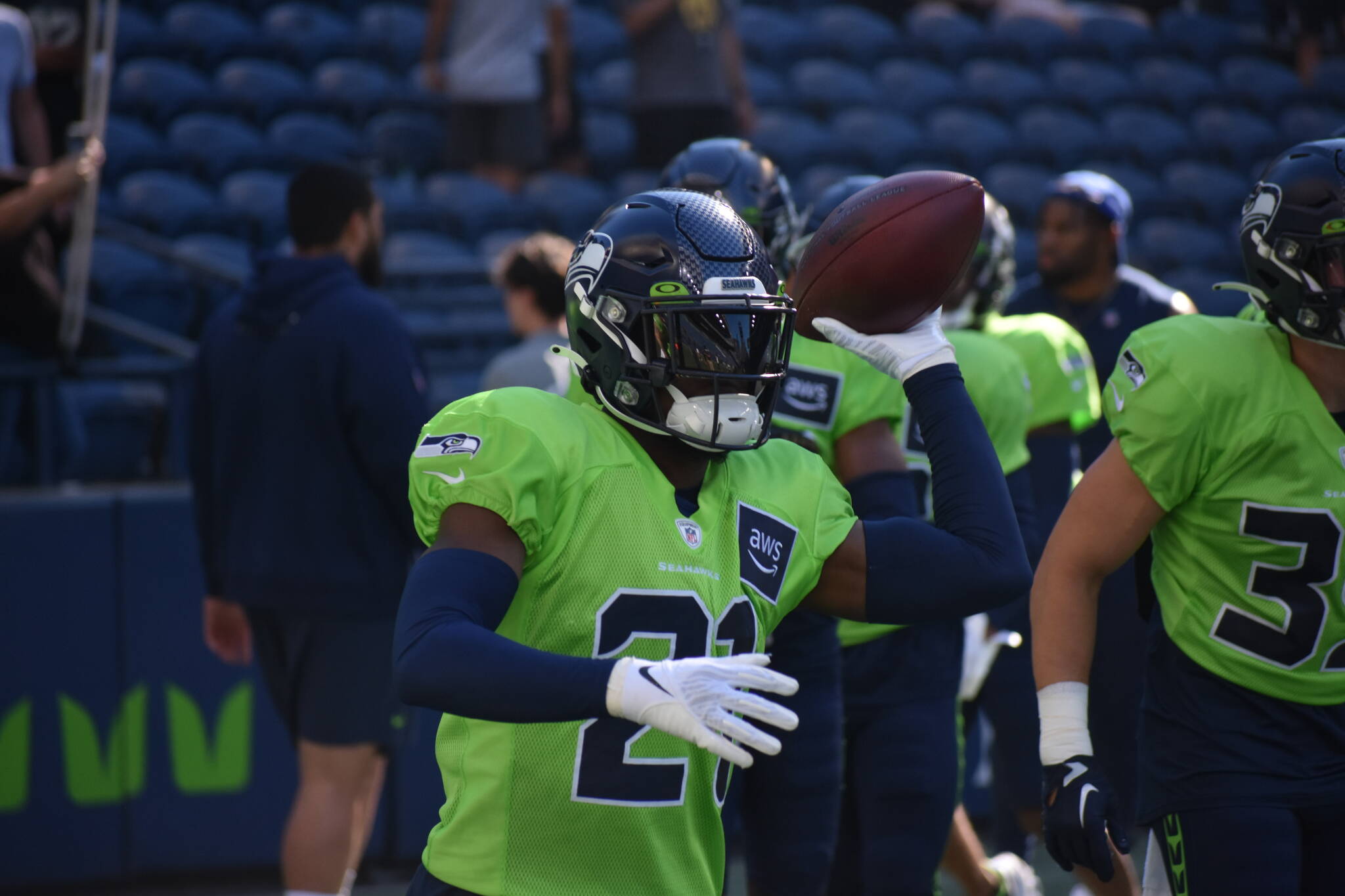 Seahawks fans watched and players played their first “game” on Aug. 4 at Lumen Field with the annual mock game — giving the players live reps before the preseason begins.