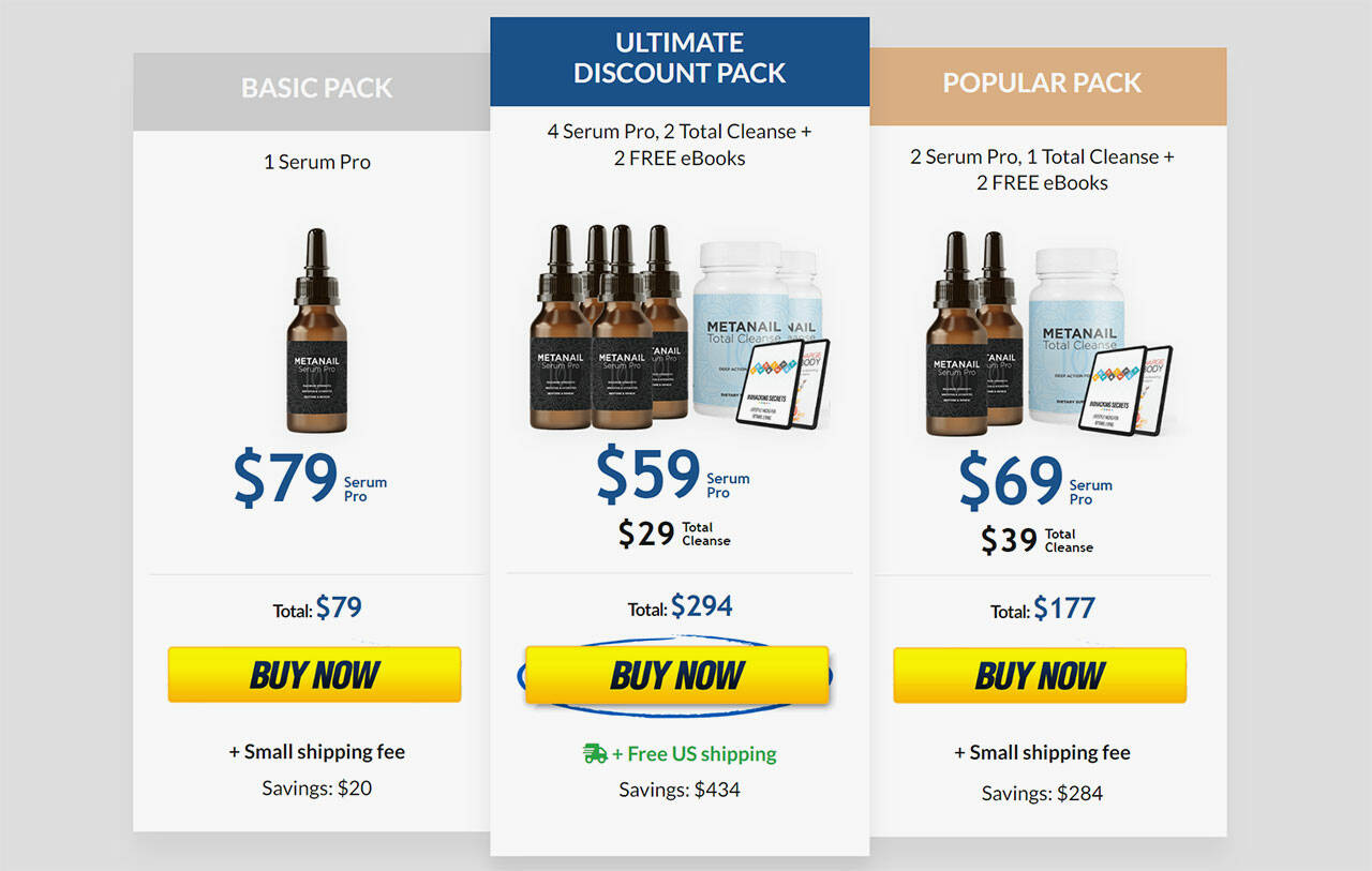Metanail Serum Pro will restore the health of your nails by moisturizing and strengthening them. It will eliminate the fungus eating your nails from the inside, ensuring you never experience recurring toenail fungus problems. Here are all the packages offered and their prices.